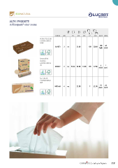 I PRODOTTI PER IL TUO I PRODOTTI BUSINESS. PER IL TUO BUSINESS. Lucart Professional ofre un’ampia gamma di prodotti e sistemi. Diverse soluzioni per soddisfare tutte Lucart Professional ofre un’ampia gamma di prodotti e sistemi. le esigenze del mondo professionale con Diverse soluzioni per soddisfare tutte un unico obiettivo: garantire afdabilità, le esigenze del mondo professionale con performance e sostenibilità. un unico obiettivo: garantire afdabilità, performance e sostenibilità. ECONATURAL ECONATURAL EcoNatural è la linea CARTA+DISPENSER che adotta un modello di economia circolare grazie alla trasformazione dei cartoni per bevande usati in due nuove materie prime: Fiberpack ® e Al.Pe. ® . EcoNatural è la linea CARTA+DISPENSER che adotta un modello Tutti i prodotti in Fiberpack ® della linea EcoNatural sono certifcati di economia circolare grazie alla trasformazione dei cartoni per EU Ecolabel e FSC ® Recycled. bevande usati in due nuove materie prime: Fiberpack ® e Al.Pe. ® . ALTRI PRODOTTI della linea EcoNatural sono certifcati Tutti i prodotti in Fiberpack ® EU Ecolabel e FSC ® Recycled. in Fiberpack color avana ® 80 codice veli m cm cm n° cm conf. collo 80 veline facciali ECONATURAL 100V 100 40 841073 2 no 21,00 100 20,00 fogli conf. lenzuolini medici ECONATURAL 70 6 1 870099 2 no 70,00 59,00 13,00 190 37,00 rotoli conf. fazzoletti ECONATURAL 90F 10 24 843166J 4 no 21,00 9 21,00 pacc. conf. | carte per l'igiene 119