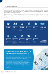 Riviera Maestri del Lavoro, 10 - 35127 Padova - ITALY | P.Iva: 03845190283 - Tel.: 049 8792456 - Fax: 049 8791424 ED.1del 2014 E-mail: info@italchimica.it - www.italchimica.it Nata nel 2003, Italchimica è una delle principali produttrici italiane di detergenti e cosmetici. L’azienda, con una produzione altamente innovativa, si è sviluppata con grande successo divenendo una dei leader nel suo settore a livello internazionale. Nell’arco degli anni l’esperienza di Italchimica si è sviluppata e rafforzata anche grazie all’acquisizione di diverse aziende del settore con il fine di migliorare la propria professionalità, conoscenza e capacità produttiva. SOLUZIONE PER IL MONDO DELLA DETERGENZA PROFESSIONALE Ancora prima della realizzazione di Italchimica, nel lontano 2001, nasce Sanitec, che ad oggi è il brand leader a livello nazionale per la detergenza nel settore HO.RE.CA. Linea di eccellenza per ogni tipo di esigenze nell’ambito professionale, oltre all’ottima qualità dei prodotti, il brand offre un servizio più ampio con assistenza tecnica personalizzata per servizi di installazione sistemi di dosaggio e corsi di formazione sull’utilizzo dei prodotti. Una garanzia per la pulizia completa di qualsiasi tipo di superficie. 126 | prodotti per l'igiene
