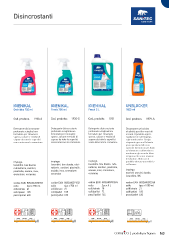 Disincrostanti IGIENIKAL IGIENIKAL IGIENIKAL UNBLOCKER Orchidea 750 ml Fresh 750 ml Fresh 5 L 1000 ml Cod. prodotto: NEWNEW Cod. prodotto: NEW Cod. prodotto: 1931 Cod. prodotto: 1979-S 1930-S 1920-S Detergente disincrostante Detergente disincrostante Detergente disincrostante Disgorgante gel ad alta profumato scioglicalcare profumato scioglicalcare profumato scioglicalcare alcalinità specifico scarichi formulato per rimuovere formulato per rimuovere formulato per rimuovere ostruiti. Il prodotto agisce sporco, calcare e residui di sporco, calcare e residui di sporco, calcare e residui di rapidamente sull’ingorgo, NEW NEW sapone da tutte le superfici sapone da tutte le superfici sapone da tutte le superfici superando anche l’acqua senza intaccare le cromature. senza intaccare le cromature. senza intaccare le cromature. stagnante grazie all’elevato peso specifico della sua speciale formula in gel. Aiuta ad eliminare i cattivi odori e mantenere gli scarichi liberi ed igienizzati senza rovinare le tubature. Utilizzare il NEW NEW impiego: impiego: impiego: prodotto almeno una volta la lavandini, box doccia, lavandini, box doccia, rubi- lavandini, box doccia, rubi- settimana. rubinetterie, sanitari, netterie, sanitari, piastrelle, netterie, sanitari, piastrelle, impiego: piastrelle, acciaio, inox, acciaio, inox, cromature, acciaio, inox, cromature, scarichi ostruiti, doccia, cromature, ceramica ceramica ceramica lavandino, WC codice EAN 8032680392368 codice EAN 8054633830703 codice EAN 8032680391521 codice EAN 8032680391965 1000 6pz x 1000 ml 3 Kg collo 1000 mlml 3 Kg 750 collo collo 5 KgKg750 ml collo 6pz x 750 ml 750 6pz x 750 ml 5 2pz x 5 L 750 mlml5 750 ml 750 mlml 750 mlml750 ml 750Kg colli/strato 21 colli/strato 21 colli/strato 21 colli/strato 18 codice: codice: 1979-S 1979-S codice: codice: 21502150 codice: codice: 24302430 codice: codice: 2431 ( A ranc i one ) 2431 ( A ranc i one ) colli/pallet 105 codice EAN: 80326803923688032680392368 codice EAN: 80326803923448032680392344 2432 ( R os s o)( R os s o) codice EAN: 80326803910888032680391088 colli/pallet 105 colli/pallet 105 colli/pallet 72 codice EAN: codice EAN: codice EAN: 2432 codice: codice: 1940 codice: 1930-S1930-Scodice: 1920-S codice: codice: 1920-S1920-S codice: codice: 19401940codice: 1931 codice: codice: 19311931codice: 1930-S 2433 ( V e rd e )V e rd e ) confezione: 1 pz x Kg31 pz x Kg3 confezione: 6pz x ml 10006pz x ml 1000 confezione: 12pz x g 8812pz x g 88 pezzi/pallet 630 codice EAN: 8032680391552 codice EAN: codice EAN: 80326803919658032680391965codice EAN: 8032680391521 codice EAN: codice EAN: 80326803915218032680391521codice EAN: 8054633830703 codice EAN: codice EAN: 8054633830703 8054633830703 codice EAN: codice EAN: 80326803915528032680391552codice EAN: 8032680391965 pezzi/pallet 630 pezzi/pallet 630 pezzi/pallet 144 confezione: confezione: confezione: 2433 ( codice EAN: 8032680393952 ( A ranc i one )8032680393952 ( A ranc i one ) confezione: 6pz x ml 7506pz x ml 750 confezione: confezione: 6pz x ml 7506pz x ml 750confezione: 6pz x ml 750 confezione: 2pz x Kg 52pz x Kg 5confezione: 6pz x ml 750 confezione: confezione: 12pz x ml 750 codice EAN: confezione: confezione: confezione: 12pz x ml 75012pz x ml 750confezione: 2pz x Kg 5 8054633830505 ( R os s o)( R os s o) 8054633830505 8054633830512 ( V e rd e )8054633830512 ( V e rd e ) confezione: confezione: 50pz x c t50pz x c t retina deodorante uri tabs bio uri - screen diSgorg uri tabs bio uri - screen retina deodorante diSgorgante gelante gel blu wc gel igienikal ba igienikal bagno alcalino 163 per urina blu wc gel igienikal bagnogno blu wc gel | prodotti per l'igiene alcalino per urinatoitoi O O rc h i d e a e M e logranorc h i d e a e M e lograno CO C las s i clas s i crc h i d e a e M e lograno CC C las s i clas s i clas s i c C las s i c ormula ormula in potente con-in potente con- p astig lie R etina p R etina p er u rinatoi - con b loc-er u rinatoi - con b loc- R etina p R etina p er u rinatoi er u rinatoi p astig lie deterg enti disincro-deterg enti disincro- tro scarichiti stanti per urinatoi ecc iello urinatoi ecc iello Anticalcare p i ostru itii ostru p rofu mata Anticalcare p Anticalcare p rofu mato - ig ienizzante Anticalcare p tro scarich stanti per ch etto b ch etto b iolog icoiolog ico p rofu mata Anticalcare p rofu matorofu mato Anticalcare p rofu mato - ig ienizzanterofu mato - ig ienizzante Disincrostante w rofu mato Disincrostante w c ig ienizzante c ig ienizzante Disincrostante w c ig ienizzante da g pastiglie in g elel in g da g pastiglie in g el La nuova retina deodorante per orante per Il prodotto agisce rapidamente Retina protettiva per urinatoi Detergente disincrostante scioglicalcare profumato formulato per rimuovere Detergente disincrostante scio-- Il prodotto agisce rapidamente Retina protettiva per urinatoi La nuova retina deod Detergente disincrostante scioglicalcare profumato formulato per rimuovere Detergente disincrostante scioglicalcare profumato formulato per rimuovere Detergente disincrostante scio Detergente disincrostante scio- Pastiglie per urinatoi a lenta dis-urinatoi a lenta dis- urinatoi rilascia 1 0 volte in più di 0 volte in più di contenente un blocchetto bio-un blocchetto bio- sull’ingorgo, superando anche sporco sporco calcare e residui di sapone da tutte le superfci senza intaccare le calcare e residui di sapone da tutte le superfci senza intaccare le sporco calcare e residui di sapone da tutte le superfci senza intaccare le sull’ingorgo, superando anche Pastiglie per contenente urinatoi rilascia 1 glicalcare profumato formulato profumato formulato glicalcare Detergente disincrostante pro Detergente disincrostante pro-- glicalcare profumato formulato Detergente disincrostante pro- logico a lento rilascio. La sua fumato per la pulizia e l’igiene eli-eli- l’acqua stagnante grazie all’e-- soluzione, igienizzanti, per fragranza in un mese. V anta un anta un cromature. G cromature. G razie alla presenza dei