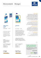 codice: 1 4 1 0 Disincrostanti Biologici codice: 1 4 4 5 codice: 1 4 2 6 N- S codice: 1 4 2 5 codice: 1 4 8 0 COSA SONO NO! DPI I prodotti Biologici sono capaci di rompere Dispositivi di Protezione Individuale i legami chimici delle sostanze organiche, facilitando così la rimozione di grasso e di residui alimentari negli scarichi, nelle tubature e nelle vasche di sgrassaggio. Negli scarichi delle cucine i depositi di cibo, grasso e sostanze organiche possono intasare le tubature ed essere fonte di cattivi odori. I prodotti Biologici sono ecocompatibili, rispettano quindi l’ambiente garantendo una specifica efficacia. LA BIOTECNOLOGIA I microrganismi non patogeni selezionati contenuti nel prodotto si attivano all’interno degli scarichi, delle tubature e delle vasche di sgrassaggio, alimentandosi dei residui e dei DISINCROSTANTI grassi, evitando gli intasamenti e garantendone SANI CITRIC BIO BACT il buon funzionamento. ULTRA codice: 2 0 2 3 5 L codice: 1 8 1 4 codice: 2 0 8 0 COME FUNZIONANO codice: 2 0 1 9 1000 ml I microrganismi si nutrono del grasso e sostanze organiche presenti negli scarichi e Cod. prodotto: 1913-S Cod. prodotto: 2410 nelle tubazioni, di conseguenza puliscono ed eliminano le incrostazioni. L’uso regolare dei prodotti biologici mantiene pulite le superfici Attivatore biologico liquido per il trattate prevenendo l’accumulo di depositi di Detergente disincrostante gel trattamento e sgrassaggio di scarichi, sporco e la formazione di Bio-Film. a base acida per la pulizia tubazioni e fosse settiche. Rimuove quotidiana di wc e bagni. le incrostazioni più resistenti, evita ELIMINAODORI La sua formulazione in gel l’intasamento delle tubazioni e la Gli odori sono causati dal decomporsi di studiata per aderire anche formazione dei cattivi odori. Ideale sostanze organiche: sulle superfici verticali è anche per il trattamento delle vasche di i prodotti Biologici degradando codice: 1 1 3 0 codice: 1 5 2 0 N- S queste sostanze ed abbattono i cattivi odori ideale per la rimozione dello sgrassaggio e delle canalette di scarico codice: 2 1 2 0 codice: 1 5 4 0 N- S sporco da tutte le superfici delle cucine professionali. eliminandone direttamente la causa. del bagno. impiego: scarichi, vasche di sgrassaggio, tubazioni, condutture impiego: igieniche di ristoranti, alberghi, bar, interno tazze WC,sanitari, mense, scuole, ospedali e case di cura. rubinetteria e tutte le superfici dure resistenti all’acqua. codice EAN 8054633836408 codice EAN 8032680392535 collo 6pz x 1000 ml collo 2pz x 5 L prodotti complementari: colli/strato 21 colli/strato 18 colli/pallet 105 colli/pallet 72 carte igieniche bio tech pezzi/pallet 630 pezzi/pallet 144 Le carte igieniche prodotte con tecnologia codice: 1 8 2 2 - S codice: 2 4 1 0 codice: 1 5 6 0 - S codice: 1 5 6 2 - S Bio Tech da Papernet, riducono il rischio di codice EAN: 8 0 3 2 6 8 0 3 9 2 0 0 9 codice EAN: 8 0 3 2 6 8 0 3 9 2 5 3 5 codice EAN: 8 0 3 2 6 8 0 3 9 3 1 6 7 codice EAN: 8 0 3 2 6 8 0 3 9 9 1 2 1 intasi e aiutano a mantenere tubi confezione: 6 p z x m l 7 5 0 confezione: 2 p z x K g 5 confezione: 6 p z x m l 7 5 0 confezione: 6 p z x m l 1 0 0 0 e reti fognarie pulite. la gamma completa a pag.96 del catalogo disincrostante ultra ruderal gel disgorgante gel acido | prodotti per l'igiene 165 D is incr os t a nt e a cido D is incr os t a nt e a cido D is incr os t a nt e a cido G el P er s ca r ich i ot t u r a t i p r ofu m a t o p r ofu m a t o Detergente acido disincrostante Disgorgante ad alto peso spe- Disincrostante fortemente acido Disincrostante fortemente acido profumato. L a sua formulazio- - - profumato. S cioglie ed elimina lo ne in gel permette al prodotto richi ostruiti senza danneggiarli vere rapidamente lo sporco sporco come calcare, ruggine, di aderire uniformemente alle eliminando i cattivi odori. L a sua in profondità. L a sua formula - formulazione professionale pe- scioglie ed elimina lo sporco più ze su gres e cotto lasciando le il calcare, le incrostazioni, la netra negli scarichi rimuoven- ostinato come calcare, ruggine, ruggine ed i cattivi odori senza do facilmente qualsiasi tipo di - ostruzione calcarea ed organi- su gres e cotto lasciando le su- ticali. ca senza intaccare le tubazioni. I M P I EG O : W C, lavandini, box I M P I EG O : bagno: lavandini, doccia, rubinetterie, sanitari, I M P I EG O : scarichi di lavandini, docce, vasche, sanitari, pia- piastrelle, bordi di piscine e at- lavelli, w c, doccie, vasche. strelle. Cucina: cuocipasta, sto- I M P I EG O viglie e attrezzature, pavimenti resistenti agli acidi. D O S AG G I O : grandi scarichi: Bagno - lavandini, docce, va- resistenti agli acidi. 3 - 4 dosi, lasciare agire 3 0 min. sche, sanitari, piastrelle. D O S AG G I O : 1- 2 %. Ca. 1- 2 Piccoli scarichi: 1 dose, lasciare Cucina: cuocipasta, stoviglie D O S AG G I O : 1- 10% in acqua tappi per 5 litri d’acqua. agire 15 min. e attrezzature, pavimenti resi- in funzione del grado di sporco. stenti agli acidi. Per sporco ostinato utlizzare tal quale. D O S AG G I O : pronto all’uso. 58