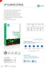 HP CLIMATE CHOICE Eccezionali risultati di stampa con una carta che sostiene progetti a favore del clima. Le emissioni di gas serra associate all'approvvigionamento, alla produzione, alle attività di distribuzione e alla fine del ciclo di vita delle carte HP Climate Choice sono compensate da Sylvamo, attraverso un progetto a favore del clima certificato da ClimatePartner, ente indipendente. Certificata FSC ed EU Ecolbal. ® PREMIUM MULTIUSO COPY LASER INKJET cod. HP codice formato peso gr fogli risme CHP 140 AO20 A4 80 500 5 CHP 142 AO23 A3 80 500 3 HP CLIMATE CHOICE 80 Bianco CIE (ISO 11475) 161 Spessore mm/1000 (ISO 534) 106 Opacità % (ISO 2471) min 92 Grado di liscio Bendtsen (ISO 8791-2) 200 24 | carte per informare