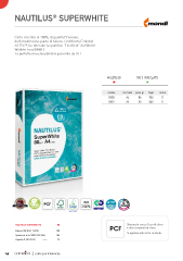 NAUTILUS SUPERWHITE ® Carta riciclata al 100%, di qualità Premium, dall’elevatissimo punto di bianco. Certificata Ecolabel ® ed FSC , ha ottenuto la qualifica “Excellent” dal World Wildlife Fund (WWF). La perfetta macchinabilità è garantita da BLI. MULTIUSO 100 % RICICLATO codice formato peso gr fogli risme DV50 A4 80 500 5 DV51 A3 80 500 5 The FSC ™ Recycled logo guarantees that Office printing. the product is made of 100% recycled fibres and that 85% of these come from For the love of nature. post-consumer waste. At NAUTILUS ® , we stand for gentle, sustainable and conscious handling of nature and its resources. The Green Range is Mondi’s trademark for Thus, our ultimate goal is to reliably provide our customers with recycled paper of the highest sustainable paper solutions and consists quality, purity and whiteness. For all their applications – without compromise. That's how we entirely of FSC ™ or PEFC ™ certified paper, totally chlorine free paper or 100% recycled can make a difference, together. paper. NAUTILUS ® SuperWhite is 100% NAUTILUS ® – All for the love of nature. recycled and so part of Mondi’s Green Range. medium whiteness high whiteness AT/11/001 Products with the EU Ecolabel are less harmful in their impact on the environment NAUTILUS ® is also available for professional printing needs in various formats and substances. than others.The EU Ecolabel is managed by the European Union. Please collect used For more detailed information please visit www.mymondi.net/nautilus paper for recycling. Office Laser multifunctional Desktop inkjet Internal office communication External office communication NAUTILUS ® SuperWhite is a CO 2 neutral paper. The product carbon footprint is Full colour SuperWhite calculated according to the Confederation of European Paper Producer’s (CEPI) 10 toes office print-outs standard. We neutralize unavoidable possible very suitable perfect fit emissions in the paper production from cradle to Mondi factory gate by supporting verified emissions reduction projects. Scan the QR Typical applications: Presentations, sustainability reports, corporate stationery, marketing 2 code for more information. brochures, company reports, direct mail, invoices, annual reports, manuals 80 A4x 500g/m ENGLISH FRANÇAIS 80 NAUTILUS SUPERWHITE Paper made of 100% recycled fibres papier 100% recyclé Sbiancato senza l'uso di cloro Papier fabriqué à base de pâte à High whiteness, low dusting and Une blancheur élevée, faible tendance au perfect runnability Ideally suited for all types of communication poussiérage et passage parfait en machine Super white, CO 2 neutral, Conseillé pour tout type de communication Papers with ColorLok ® Technology provide ESPAÑOL 100% recycled paper for laser, e altri composti di cloro. ITALIANO higher inkjet printing quality with vivid colours, Fabricado al 100% con fibras recuperadas bolder blacks, faster drying time and overall Carta prodotta al 100% con fibre riciclate inkjet printers and copiers. superior printing results on all printing devices. In addition, papers with ColorLok ® Technology Alta blancura, baja presencia de polvillo y un Bianco CIE (ISO 11475) comportamiento en máquina perfecto Elevato punto di bianco, basso spolvero All for the love of nature. meet a range of specifications that apply to 150 inkjet and laser printing. e perfetta macchinabilità Idóneo para todo tipo de comunicación Ideale per ogni tipo di comunicazione DEUTSCH NEDERLANDS Si applica alle carte riciclate. Papier aus 100% Recycling-Fasern Papier gemaakt van 100% gerecyclede vezels Hohe Weiße, geringe Staubentwicklung und Spessore mm/1000 (ISO 534) perfekte Laufeigenschaften perfecte loopeigenschappen NAUTILUS ® SuperWhite was awarded the 106 Hoge witheid, geringe stofontwikkeling en Ideal geeignet für alle Arten der Ideaal geschikt voor diverse soorten van Kommunikation communicatie BLI certificate for being highly reliable across a wide range of devices in BLI’s extensive testing program, with excellent performance related to image quality, dusting and curl. Buyers Lab is the leading global independent office products test lab and business Opacità % (ISO 2471) min 93 consumer advocate. www.buyerslab.com pisamiški papir ● Багатофункцiональний офiсний папiр ● Мултифункционална канцелариска хартиjа ● Wielofunkcyjny papier biurowy ● Мултифункционална офис хартия ● Vίceýčelovy kancelářský papír ● Multifunkcionális irodai kommunikációs papír ● Hârtie multifuncţională pentru birou ● Viacúčelový kancelársky papier ● multifunktions kontorpapir ● Multifunktsionaalne kontoripaber ● Monikäyttöinen toimistopaperi ● Dažādi lietojams biroja papírs ● Daugiafunkcis biuro popierius ● Multifunctioneel Kantoor Papier ● Multifunksjonelt kontorpapir ● Multifunktionellt 多 功 能 办 公 用 纸 ● マルチユースコピー用紙 ● 다목적 사무용 용지 ● Бумага для печати. Информация действительна только для России и стран СНГ. Производитель: Монди Нойзидлер ГмбХ, Австрия 3363, Ульмерфельд-Хаусменинг, тел: +43 (0)7475 500. Товар сертифицирован. www.mymondi.net/nautilus Импортер: АО “Монди Сыктывкарский ЛПК”, г. Сыктывкар, пр-т Бумажников, д.2, тел.: +7 (8212) 69 95 55 80 g/m² 500x Et-Nr. 000.000 A4 Made in Austria 210x297mm LG 44 | carte per informare