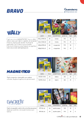 codice form. colore/finitura spess.my fogli conf. Fogli con retro in NANOVENTOSE (senza colla), WALLY-WM-A4 A4 bianco 190 25 1 attacca stacca per tutte le superfici, decorazione d’interni, display punti vendita. Facilmente WALLY-WM-A3 A3 bianco 190 25 1 applicabile, senza bolle e riposizionabile. WALLY-CG-A4 A4 trasparente 190 25 1 Può essere rimosso senza rovinare la superficie entro alcuni mesi dall'applicazione. WALLY-CG-A3 A3 trasparente 190 25 1 codice form. colore/finitura spess.my fogli conf. PAPER-M-A4 A4 bianco 320 25 1 Foglio magnetico stampabile per gadget, calamite, targhe ed applicazioni promozionali. PAPER-M-A3 A3 bianco 320 25 1 codice form. colore/finitura spess.my fogli conf. Foglio stampabile adatto alla retroilluminazione, PET-BL-A4 A4 opalino opaco 150 25 1 ideale per grafiche e immagini luminose per vetrine. PET-BL-A3 A3 opalino opaco 150 25 1 | carte per informare 81